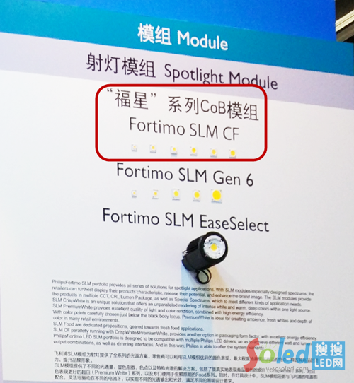 那么,飛利浦此次要發(fā)布的神秘新品是什么呢?或許從10月份香港展飛利浦的展臺布置上,我們可以看出一些端倪。當(dāng)我們比對飛利浦的產(chǎn)品手冊和香港展的產(chǎn)品陳列時,發(fā)現(xiàn)有一個新的產(chǎn)品系列在產(chǎn)品手冊中并未出現(xiàn)。這是一個新的CoB產(chǎn)品系列,還有一個非常接地氣的名字,“福星”。
