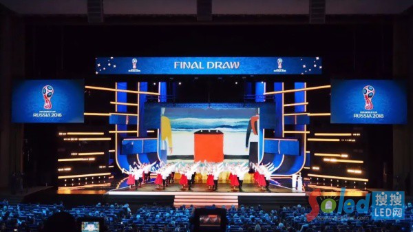 12月1日世界杯抽簽儀式,作為俄羅斯總統(tǒng)普京出席的重要場合,亦是面向全球的電視直播點(diǎn),舞臺(tái)顯示屏的視效不容有誤。而艾比森LED顯示屏,在這個(gè)舞臺(tái)上擔(dān)任了主屏的重要角色。