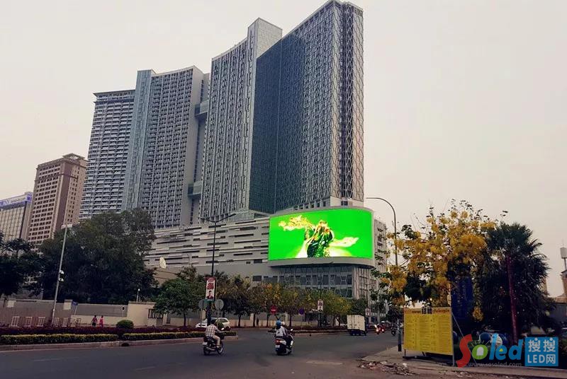 經(jīng)濟有了增長,城市形象的改變也迫在眉睫。需求突破的金邊也在今年3月底完成了一項創(chuàng)舉,在金邊地標(biāo)采用艾比森產(chǎn)品A1699打造了一塊屏體面積達到983.04㎡的巨型戶外廣告屏,目前也是金邊最大的戶外LED顯示屏。
