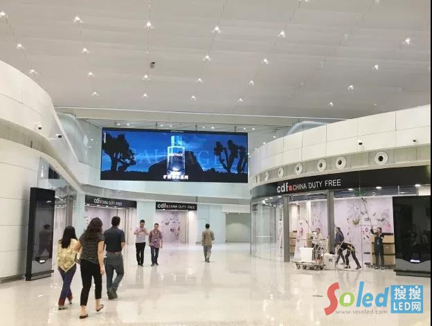 其中到達廳的創(chuàng)意通廊呈彎曲狀態(tài)顯示,通過個性化定制而成,畫面連續(xù)無拼縫,其完美畫質(zhì)保證了廣視角內(nèi)畫面不發(fā)生偏色現(xiàn)象。
