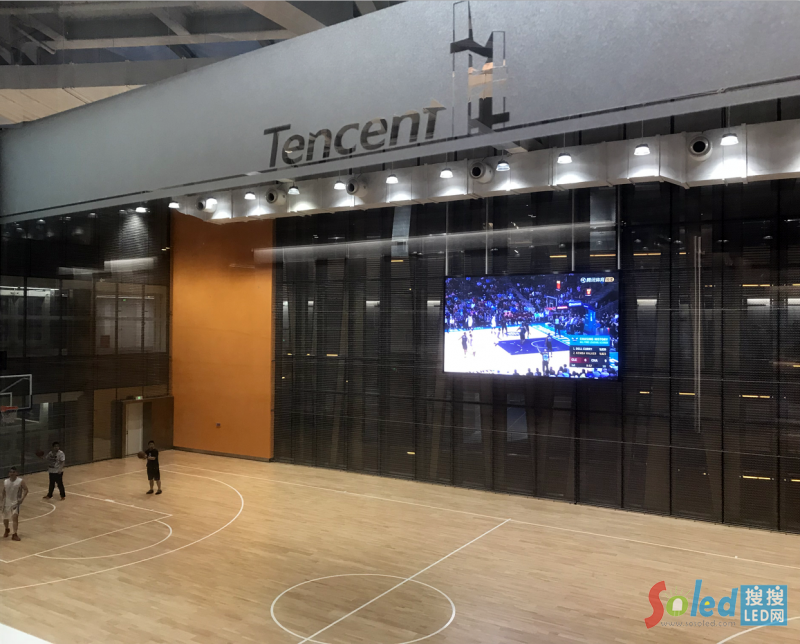你可能不知道的是,騰訊濱海大廈有著目前國(guó)內(nèi)最大的室內(nèi)運(yùn)動(dòng)場(chǎng)所,包括室內(nèi)攀巖、恒溫游泳池、室內(nèi)空中跑道、室內(nèi)籃球場(chǎng)、室內(nèi)羽毛球場(chǎng)等。此次,聯(lián)建光電就為24樓的室內(nèi)籃球場(chǎng)打造了一塊面積18㎡的PH4mm電子顯示屏,用作比賽時(shí)實(shí)時(shí)播放比分等信息,盡顯騰訊企業(yè)對(duì)員工的人文關(guān)懷。