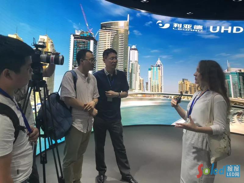 北京利亞德集團(tuán)在LED科研方面成績顯著,其LED影像顯示產(chǎn)品的全球市場占有率排名第一。利亞德所展示的LED產(chǎn)品可應(yīng)用于景觀照明、演藝、VR虛擬現(xiàn)實等領(lǐng)域,不少外國媒體記者駐足觀看。