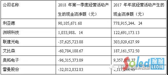 眾所周知,LED顯示屏一直以來都存在著“三角債”的問題,這種運營模式是我們的基本“行情”,本來就給我們的企業(yè)發(fā)展埋下了巨大的債務安全隱患,而今,這種危機正可能由于對現(xiàn)金流的管控不當,導致企業(yè)出現(xiàn)經(jīng)營危機。當前行業(yè),我們無需諱言,絕大多數(shù)企業(yè)都鬧起了“錢荒”,一些企業(yè)缺錢已經(jīng)到了危及生死的關頭。一旦資金鏈斷裂,企業(yè)倒下那是無可避免的事情。而且,更為可怕是,如今行業(yè)內(nèi)不但中小企業(yè)缺錢,上市企業(yè)同樣面臨著現(xiàn)金流的緊張。我們?nèi)砸陨鲜鰩准疑鲜衅髽I(yè)為例,在六大市企業(yè)里面,從2017年年報看,企業(yè)的現(xiàn)金流多少還有結余,但到了今年,從一季度公布的情況看,六家上市企業(yè),已經(jīng)有四家出現(xiàn)了現(xiàn)金流凈額為負數(shù)。