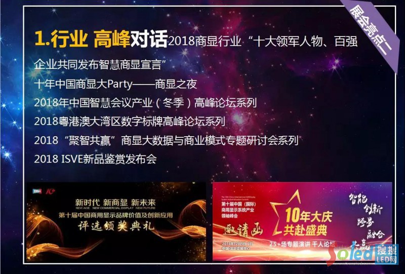 主辦方還將在12月份推出商顯產(chǎn)業(yè)“十大慶典”領(lǐng)袖峰會系列會議,更多精彩敬請關(guān)注「2018中國(國際)智慧顯示系統(tǒng)產(chǎn)業(yè)應(yīng)用博覽會 」官方網(wǎng)站。
