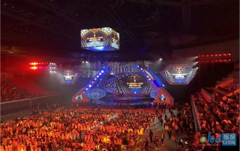 舞臺(tái)中央頂部為格特隆五面方形屏(視覺(jué)主題,主視覺(jué)整體為一枚方印,體現(xiàn)主辦方堅(jiān)定的意志和氣魄)呈現(xiàn)出電影節(jié)豐富多彩的沖擊力極強(qiáng)的視覺(jué)效果,靈動(dòng)跳躍,動(dòng)感十足,突出今年電影節(jié)的青年特點(diǎn)更為突出了本屆電影節(jié)主題為“新時(shí)代,新?lián)u籃,新力量”。