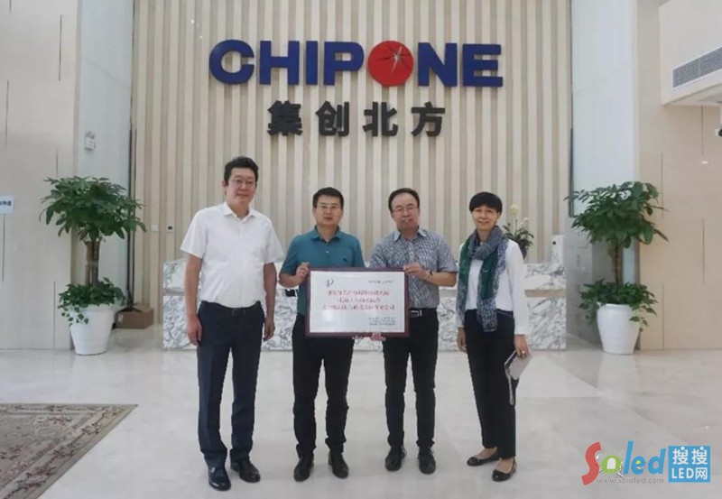 圖一 國(guó)家知識(shí)產(chǎn)權(quán)局專利局人教部人才培養(yǎng)工作處張利處長(zhǎng)(右二)、中關(guān)村知識(shí)產(chǎn)權(quán)促進(jìn)局梁雨副局長(zhǎng)(右一)向集創(chuàng)北方董事長(zhǎng)/CEO張晉芳博士(左二)、集創(chuàng)北方副總裁徐東(左一)授牌