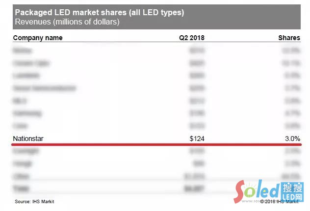 IHS Markit發(fā)布2018年Q2全球LED封裝企業(yè)排名