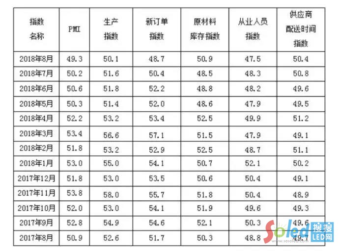 據(jù)國家統(tǒng)計局發(fā)布的數(shù)據(jù),2018年8月全國制造業(yè)PMI為51.3,比上月上升0.1個百分點,其中權(quán)重最高的生產(chǎn)指數(shù)和新訂單指數(shù)分別為53.3和52.2,位于榮枯線上,原材料庫存、從業(yè)人員、供應(yīng)商配送時間三項指數(shù)則居于榮枯線下。在全國制造業(yè)呈現(xiàn)平穩(wěn)擴張態(tài)勢的情況下,廣東省率先出手為制造業(yè)企業(yè)降低成本,讓因中美貿(mào)易、原材料上漲而處于水深火熱之中的LED顯示屏行業(yè)看到新曙光。