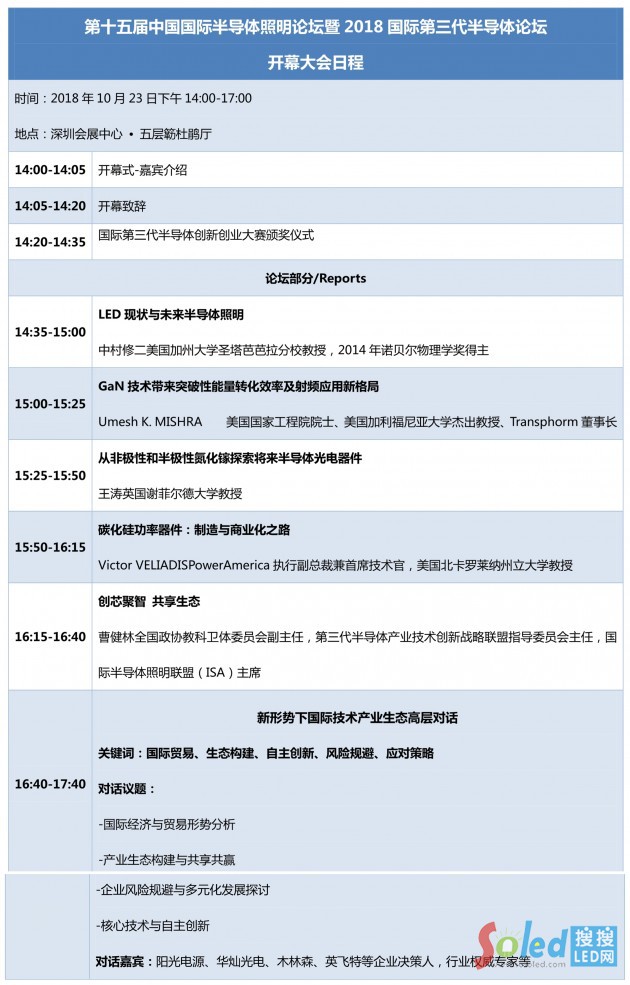 第十五屆中國國際半導(dǎo)體照明論壇暨2018國際第三代半導(dǎo)體論壇即將深圳開幕