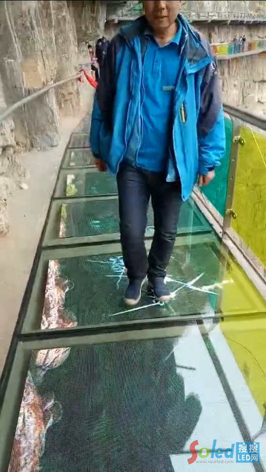 在許多景區(qū)棧道上被安裝了LED玻璃顯示屏,人走在上面會(huì)出現(xiàn)玻璃炸裂的圖像和玻璃碎裂的聲響,增加娛樂(lè)性的同時(shí)還讓人大感刺激和新奇!