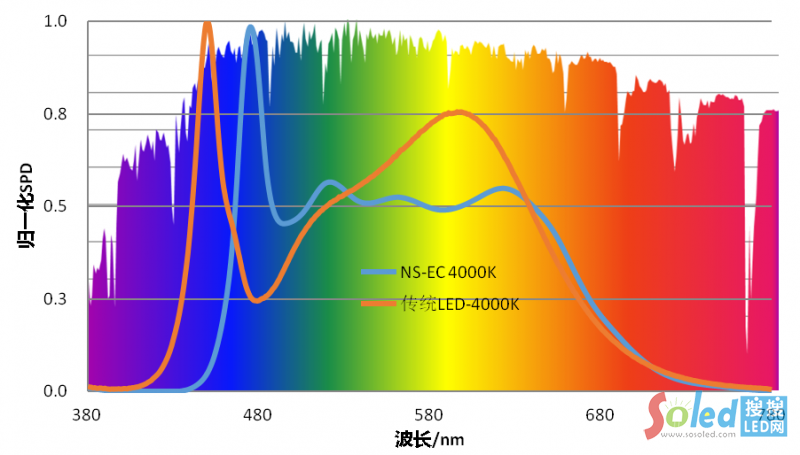Eyelove –健康光EC系列,為去藍光系列LED。其采用特殊光譜調配技術(已申請專利),光譜接近太陽光譜,并將光譜中對人眼有傷害的短波(415-460 nm)藍光部分進行過濾,形成更健康的光譜,其視覺舒適度高,更有利眼睛健康。光效高達150lm/W以上。