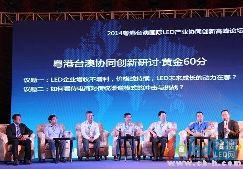 此次粵港臺澳國際LED產(chǎn)業(yè)協(xié)同創(chuàng)新高峰論壇黃金60分討論環(huán)節(jié),除了粵港臺澳四方會談外,在廣東省半導(dǎo)體照明產(chǎn)業(yè)聯(lián)合創(chuàng)新中心眭世榮主任的主持下,木林森股份照明事業(yè)部總經(jīng)理林紀(jì)良、洲明科技林洺鋒董事長、歐普照明馬志偉副總裁、香港應(yīng)科院吳恩柏副總裁、新力光源趙昆副總裁、雷士照明新聞發(fā)言人石勇軍就“LED未來成長動力以及電商渠道”展開了討論。