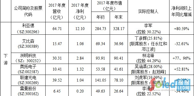 表4:LED行業(yè)上游和中游企業(yè)2017年度經(jīng)營業(yè)績一覽表