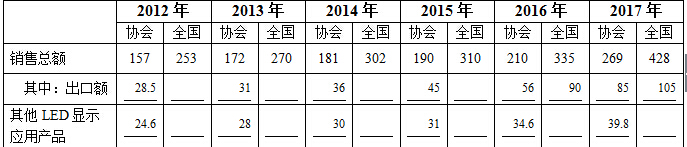 表1是近五年全國LED顯示應(yīng)用產(chǎn)業(yè)的總體變化情況。(單位:億元人民幣)