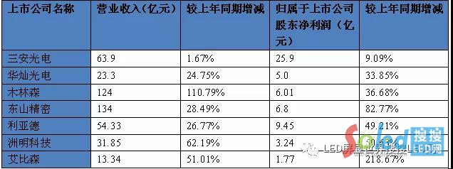 2018年上中下游部分LED上市公司前三季業(yè)績?cè)鲩L狀況