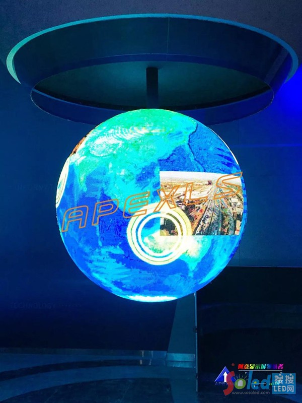 該“球體”是由深圳市康碩展電子有限公司(雷曼光電控股子公司)自主創(chuàng)意設(shè)計并順利完工的LED球形屏,采用P4高清點間距,直徑為1.8米,吊裝在文創(chuàng)園展示廳。該LED球形屏結(jié)合聲、影、光、電的多種技術(shù),渾然交織,用高科技手段多元、立體地展示文創(chuàng)園的動感空間和科技遠景,給觀眾帶來沉浸式的360°全視角視聽體驗。整個展示廳因LED球形屏瞬間充滿了神秘而又酷炫的色彩,仿佛浩瀚宇宙的未知星球,引入暇想,與整個展示中心創(chuàng)意化的設(shè)計理念完美融合。