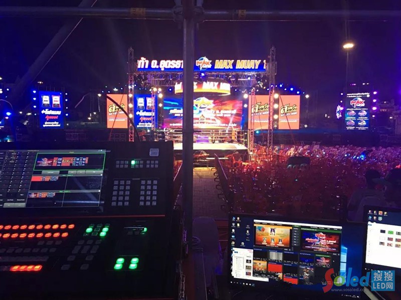 邁普視通不負(fù)眾望,公司旗下V6視頻控臺用強(qiáng)大的性能征服活動主辦方,為本次巡回賽提供視頻控制技術(shù)解決方案;烏隆他尼比賽舞臺由13塊不同尺寸的LED屏組成,面積約260多平方,后端采用3臺LED-780H視頻處理器完成畫面拼接,前端采用邁普視通一套MIG-H6視頻控臺&MIG-V6視頻切換器進(jìn)行多個畫面切換及信號輸出,完美掌控整場比賽視頻直播,為廣大拳迷們奉獻(xiàn)了一場精彩的比賽直播。