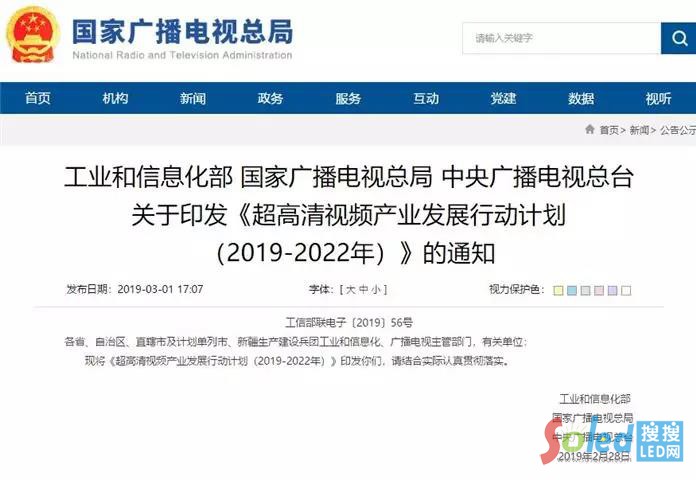 核心提示:日前,工業(yè)和信息化部、國(guó)家廣播電視總局、中央廣播電視總臺(tái)聯(lián)合印發(fā)了《超高清視頻產(chǎn)業(yè)發(fā)展行動(dòng)計(jì)劃(20192022年)》。預(yù)計(jì)到2022