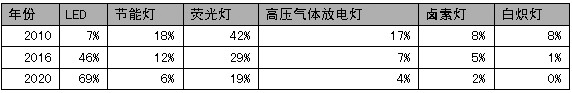 中國(guó)通用照明市場(chǎng)產(chǎn)品銷量結(jié)構(gòu)及預(yù)測(cè)(數(shù)據(jù)來源:麥肯錫)