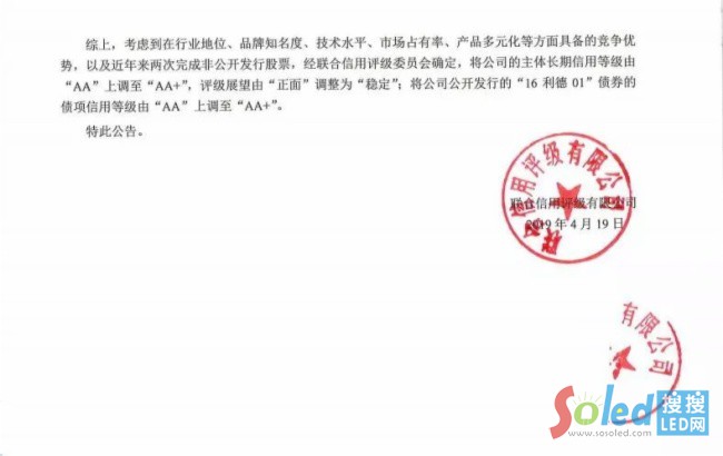 利亞德:主體長期信用等級、債券信用等級雙雙上調(diào)至AA+級