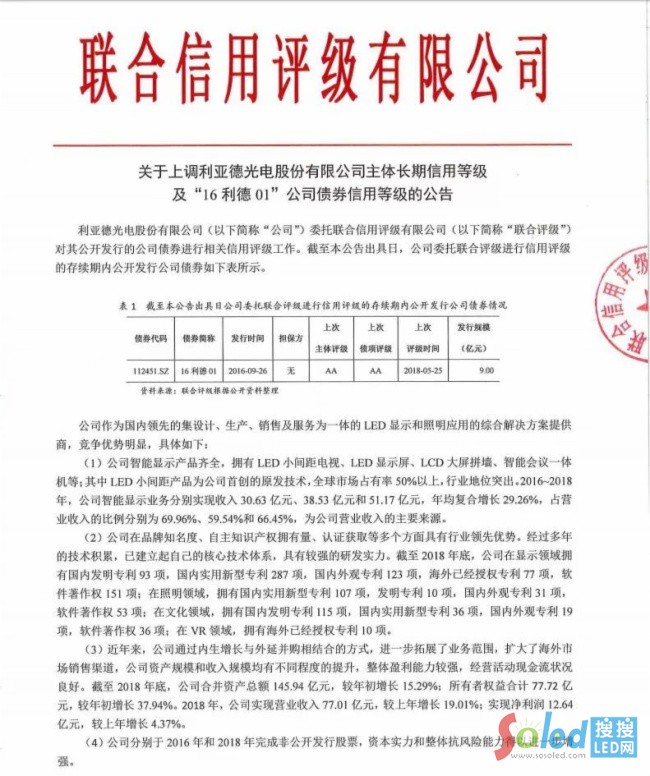 這一調(diào)整是聯(lián)合評級委員會,基于利亞德行業(yè)地位、品牌知名度、技術(shù)水平、市場占有率、產(chǎn)品多元化等方面具備的競爭優(yōu)勢,以及近年來兩次完成非公開發(fā)行股票等情況綜合評定的結(jié)果。