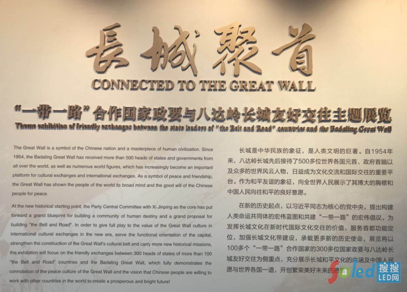 核心提示:日前,以第二屆“一帶一路”國際合作高峰論壇成功召開為契機,由中國長城學會、延慶區(qū)委宣傳部主辦的《長城聚首——“一帶一路”合作國家政要與八達嶺長城友好交往》主題展覽在中國長城博物館開展。同時,《萬里長城與一帶一路文化研討會》也于4月23日同地舉行。由巴科光電設計制造的LED環(huán)形屏、弧形屏驚艷亮相,讓中國長城博物館煥發(fā)出新的活力,為展覽增添可視性和趣味性的同時,也為此次研討會的順利召開保駕護航。