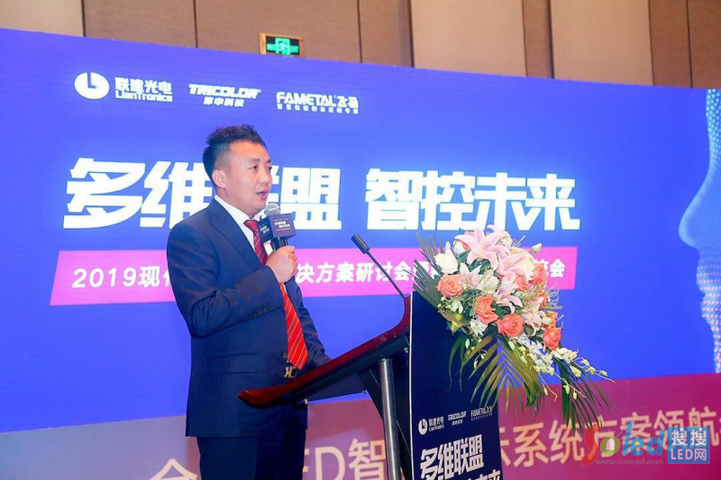 交流會開幕儀式上,聯(lián)建光電股份有限公司副總裁郝明軍先生剖析了聯(lián)建光電的內核,并且深入分析了未來小間距LED顯示中國市場潛力,明確了聯(lián)建光電未來發(fā)展之路,肩負著不同尋常的責任與使命,以品質為基,創(chuàng)新為矢,帶動企業(yè)、行業(yè)的全面提升,引領中國LED顯示行業(yè)的新潮流。