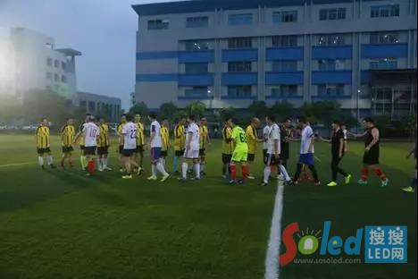惠州雷曼,擁有一塊國際標準的足球場,而當天的聯(lián)盟參訪團的多名成員是足球愛好者。以球會友,成為當天的最別具一格的切磋環(huán)節(jié)。Micro LED微顯示聯(lián)盟與雷曼光電的足球友誼賽,在雨霧中拉開帷幕。由南方科技大學、香港科技大學的教授、博士生為主體組成聯(lián)盟球隊,迎戰(zhàn)由惠州雷曼各部門人員組成雷曼足球隊。經(jīng)過了一個多小時的激戰(zhàn),微顯示聯(lián)盟隊以4:3的比分客場戰(zhàn)勝了雷曼隊。
