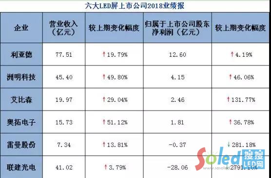 面對這批大型企業(yè)的進(jìn)入,LED企業(yè)在規(guī)模上的劣勢相當(dāng)明顯:以2018年六家LED上市企業(yè)業(yè)績?yōu)槔移髽I(yè)的營業(yè)收入從高到低依次為:利亞德77.51億元、洲明科技45.40億元、聯(lián)建光電41.02億元、艾比森19.97億元、奧拓電子15.73億元、雷曼股份7.34億元。六家企業(yè)營業(yè)收入共計206.97億元,而僅海康威視一家,2018年的營業(yè)收入就已經(jīng)高達(dá)498.09億元,相當(dāng)于六家上市企業(yè)營收總額的2.4倍。