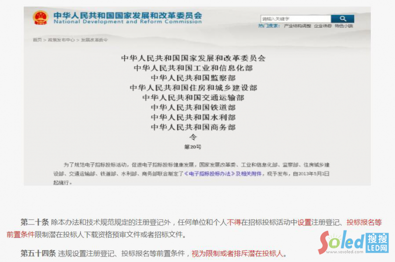 在此之前,國家發(fā)改委和住建部等八部委公布的第20號令《電子招標投標辦法》中,也明確規(guī)定:除本辦法和技術(shù)規(guī)范規(guī)定的注冊登記外,任何單位和個人不得在招標投標活動中設(shè)置注冊登記、投標報名等前置條件,限制潛在投標人下載資格預(yù)審文件或者招標文件。