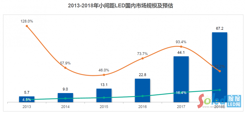 據(jù)研究機(jī)構(gòu)AVC Revo監(jiān)測的數(shù)據(jù)顯示,2018年中國小間距LED市場規(guī)模已達(dá)到67.2億元,面積達(dá)到10.9萬㎡。