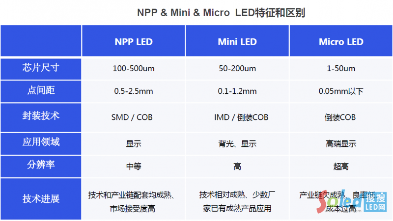 隨著小間距市場的爆發(fā),市場對高密高清需求的提升,基于IMD技術(shù)的Mini-LED、COB(Chip On Board)、分立器件NPP (0606/0404等)三種不同技術(shù)路線的封裝形式也開始同臺競技。