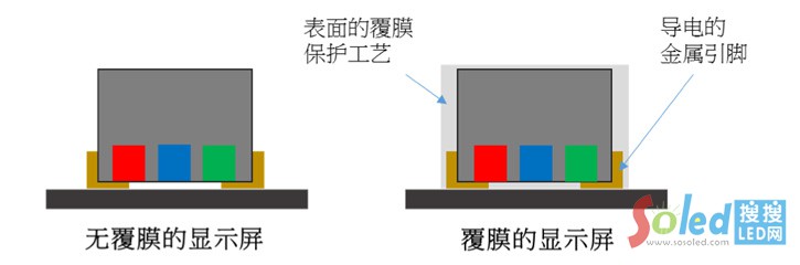 對于一般防護等級為IP40(IPXX,前X防塵、后X防水)的LED顯示產(chǎn)品,具備有效提升LED燈面的防護等級工藝、提供防磕碰效果、避免掉燈情形發(fā)生以及降低整屏壞點率(PPM)等優(yōu)勢,這類解決方案目前已經(jīng)對應市場需求,生產(chǎn)成熟,并且也不會過度增加整體成本負擔。