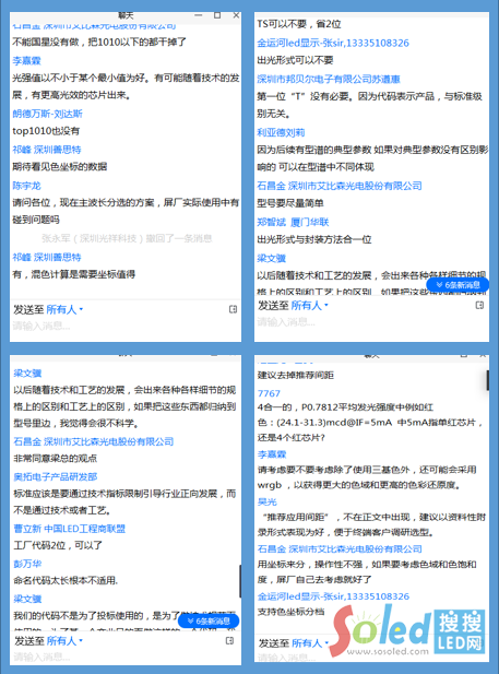歐司朗、華燦、乾照、三安、兆馳、士蘭明芯等上游芯片企業(yè);國星光電、瑞豐、鴻利智匯、聚飛、希達(dá)、朗德萬斯、晶臺、新光臺、晶泰星、東山精密、華聯(lián)等中游封裝企業(yè);利亞德、洲明、三思、洛普、奧拓、聯(lián)建、艾比森、雷曼、青松、奧拓立翔、強(qiáng)力、山西高科、藍(lán)普科技、光祥、環(huán)宇藍(lán)博、德賽智能、阿爾泰、金運(yùn)河、藍(lán)普視訊、電明、科倫特、格特隆、彩易達(dá)、深德彩、嘉德光電、北京科鷹、云智、仰邦、諾瓦、靈星雨、靈信、桐源、?、威創(chuàng)、大華等下游應(yīng)用代表性企業(yè);跨界顯示TCL華星、海信、京東方等80多家企業(yè)200多人,共同出席了討論會。本次表貼系列型譜團(tuán)體標(biāo)準(zhǔn)討論會參會企業(yè)層次之高(以上市公司和行業(yè)代表性企業(yè)為主),覆蓋行業(yè)范圍之廣(上、中、下游及周邊應(yīng)用),都創(chuàng)下歷年之最,與會專家對于本次表貼系列型譜團(tuán)體標(biāo)準(zhǔn)牽頭方——中國光學(xué)光電子行業(yè)協(xié)會LED顯示應(yīng)用分會如此勞心費(fèi)力公開征集意見的作法給予了充分的肯定。
