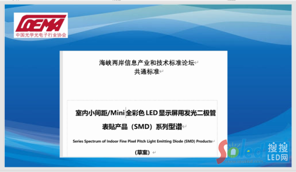 中國光學(xué)光電子行業(yè)協(xié)會LED顯示應(yīng)用分會副秘長蔡廣超介紹了本次表貼系列型譜團(tuán)體標(biāo)準(zhǔn)起草的過程,蔡廣超特別強(qiáng)調(diào),本次討論的表貼系列型譜團(tuán)體標(biāo)準(zhǔn)也是去年(2019年)海峽兩岸標(biāo)準(zhǔn)論壇立項(xiàng)的共通標(biāo)準(zhǔn)。本次討論的團(tuán)體標(biāo)準(zhǔn),未來將通過兩岸的相關(guān)部門進(jìn)行緊密溝通,會形成海峽兩岸信息和技術(shù)標(biāo)準(zhǔn)的共通標(biāo)準(zhǔn)。