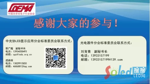 作為本次表貼系列型譜團(tuán)標(biāo)討論會的召集人,中國光學(xué)光電子行業(yè)協(xié)會副秘書長、LED顯示應(yīng)用分會秘書長洪震強(qiáng)調(diào),會議目的旨在希望與會的專家和企業(yè)人士給出更多的寶貴意見,集思廣益,共同完善此項(xiàng)團(tuán)體標(biāo)準(zhǔn),通過團(tuán)標(biāo)來推動和規(guī)范我們LED行業(yè)的發(fā)展。在與會專家和各大企業(yè)人士的共同努力下,本次團(tuán)標(biāo)會議成果豐碩。會議的最后,蔡廣超副秘書對會議作了總結(jié)性發(fā)言,希望大家會后繼續(xù)通過微信,郵件等方式反饋意見,對搜集到的意見,專家組將會逐條討論分析,進(jìn)一步完善本次團(tuán)體標(biāo)準(zhǔn)。
