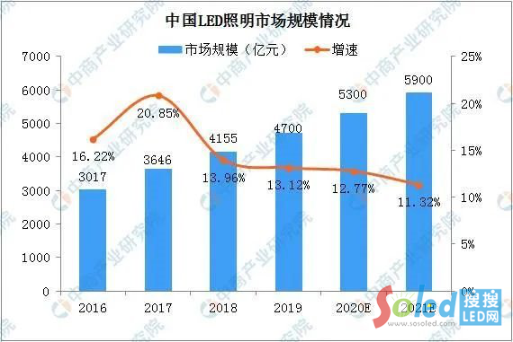 數(shù)據(jù)來(lái)源:國(guó)家半導(dǎo)體照明工程研發(fā)及產(chǎn)業(yè)聯(lián)盟(CSA)、中商產(chǎn)業(yè)研究大數(shù)據(jù)庫(kù)