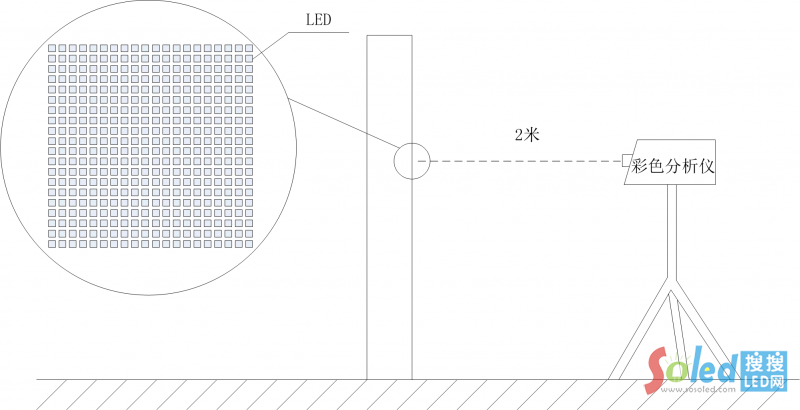 按照《SJ/T 11281-2017 發(fā)光二極管(LED)顯示屏測(cè)試方法》5.3.2中規(guī)定的方法測(cè)量
