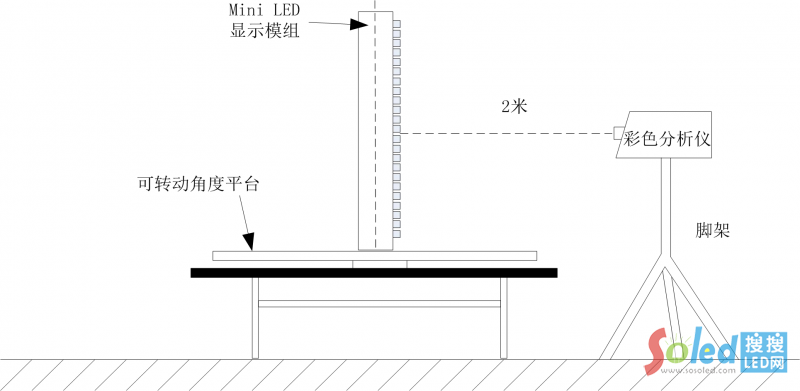 按照《SJ/T 11281-2017 發(fā)光二極管(LED)顯示屏測(cè)試方法》中規(guī)定的方法測(cè)量 Mini LED
