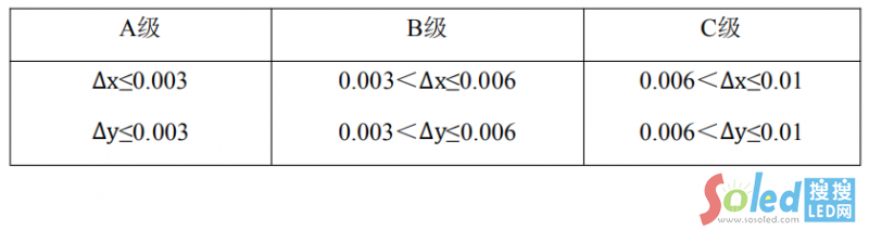 按照《SJ/T 11281-2017 發(fā)光二極管(LED)顯示屏測(cè)試方法》中規(guī)定的方法測(cè)量LED 顯示屏色坐標(biāo),應(yīng)滿足5.1.6.6的要求。