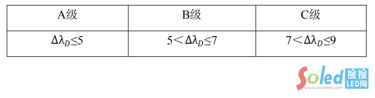 按照《SJ/T 11281-2017 發(fā)光二極管(LED)顯示屏測(cè)試方法》中5.2.4規(guī)定的方法測(cè)量基色主波長(zhǎng)誤差,應(yīng)滿足5.1.6.5的要求。對(duì)比表7,應(yīng)納入相應(yīng)等級(jí)。
