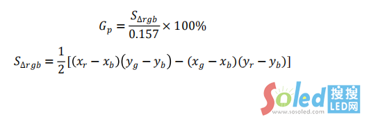 b) 按色度坐標(biāo)(x,y),用下面2公式,計(jì)算色域面積S△rgb和色域覆蓋率Gp;