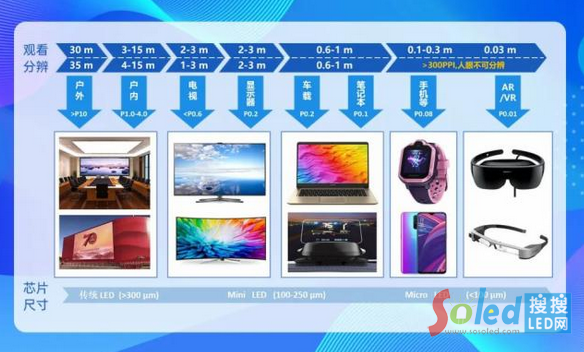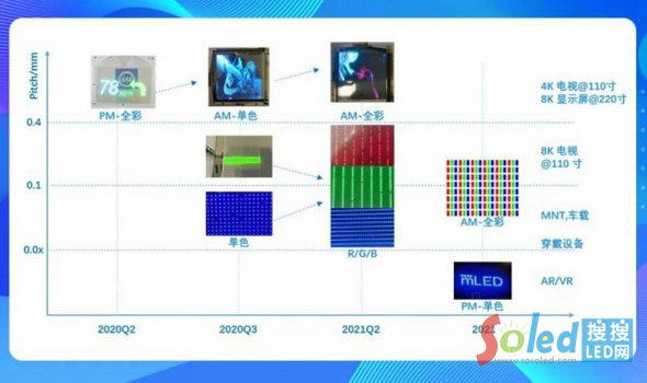 預(yù)計明年將實現(xiàn)P0.1以下的主動式驅(qū)動全彩顯示及P0.0x以下的被動式驅(qū)動單色顯示,未來可滲透在4k/8k大尺寸電視顯示屏、車載顯示屏、穿戴設(shè)備顯示設(shè)備、AR/VR等應(yīng)用市場。