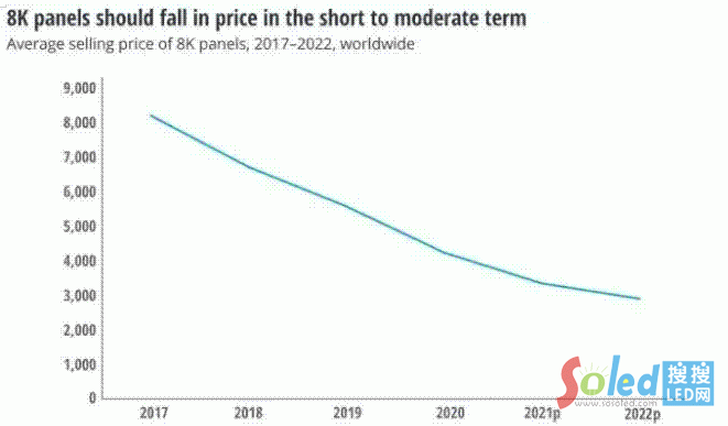 正如以上所料,近日,據(jù)德勤會計師事務所發(fā)布的一份深度報告中顯示,預計8K電視的平均售價將從2020年的4500美元下降到2021年的3500美元。要知道,在2017年,8K電視的平均建議零售價超過8000美元。