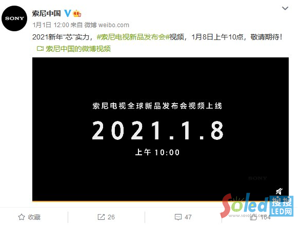 根據(jù)索尼中國(guó)的消息,索尼將于1月8日上午10點(diǎn)舉行索尼電視全球新品發(fā)布會(huì),根據(jù)發(fā)布會(huì)預(yù)熱文案,2021年新款索尼電視或?qū)⒋钶d全新一代電視芯片。