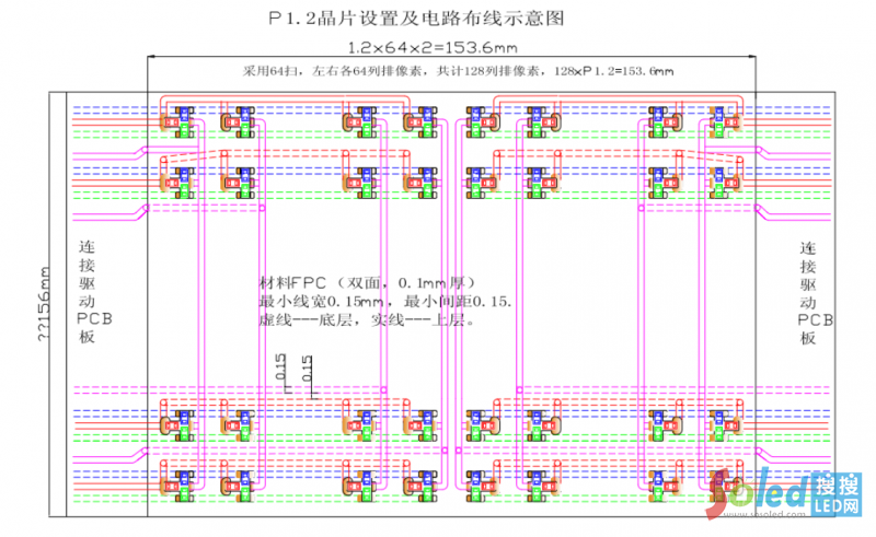 因而單層雙面FPC就可把RGB三晶片的行驅(qū)動電路線和列驅(qū)動電路線從側(cè)面引出,如圖所示。