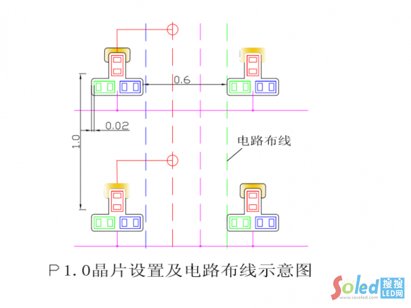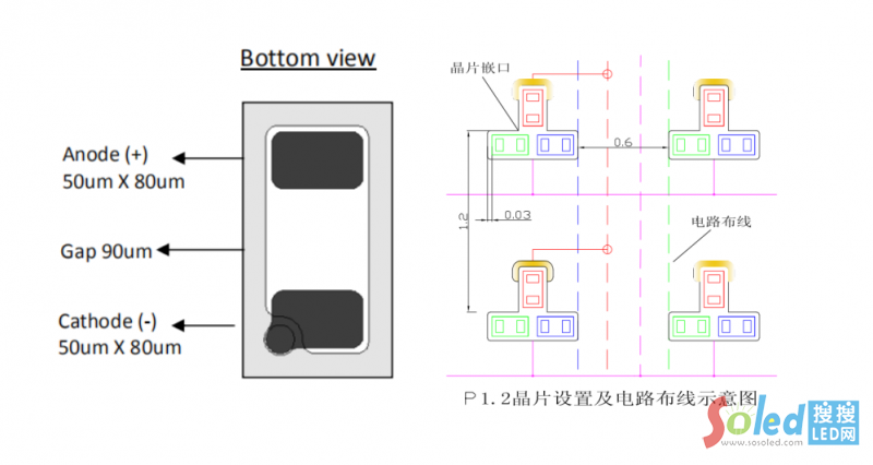 CIB結(jié)構(gòu),晶片之間不必有間距,所留間距是由于尺寸及打晶誤差,因而RGB三晶片周邊留布線空間大。