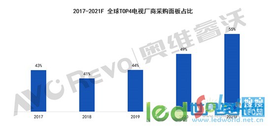 對于面板廠商的角度來說,和頭部品牌加強合作意味著將擁有更穩(wěn)定的需求和更合理的價格。當面板資源有限的情況下,頭部品牌廠商獲取資源的優(yōu)勢得以體現(xiàn),因此2020年下半年,頭部品牌的采購量基本都實現(xiàn)了大幅增長,2020年TOP4電視廠商獲得全球49%的面板資源。
