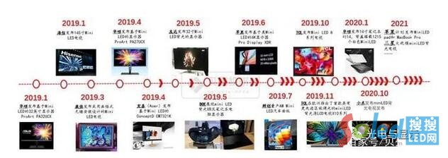 2019年以來,蘋果、小米、TCL、海信、華碩、群創(chuàng)、友達(dá)、京東方等巨頭紛紛推出Mini LED背光或類似技術(shù)的電視、顯示器、VR和車載顯示等終端產(chǎn)品,Mini LED迎來規(guī)模商業(yè)化元年,隨著產(chǎn)業(yè)鏈的成熟、成本的下降,2021年Mini LED背光有望迎來快速滲透。