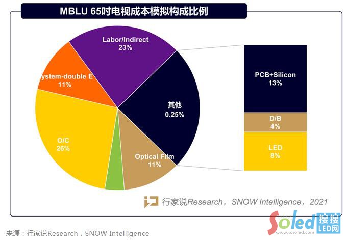 不過(guò),OLED已經(jīng)提前搶占了高端電視市場(chǎng),Mini LED背光作為后來(lái)者,與OLED同處價(jià)格敏感的消費(fèi)市場(chǎng)競(jìng)爭(zhēng),成本或許會(huì)成為Mini LED背光能否取勝的關(guān)鍵。接下來(lái),就對(duì)Mini LED背光的成本進(jìn)行解剖,看看Mini LED背光的成本潛力如何。
